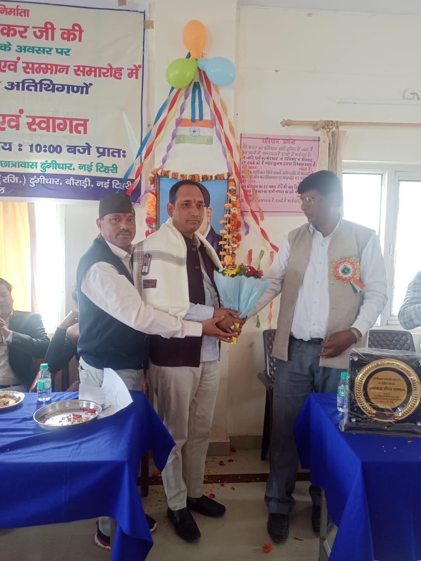 On April 14, 2024, a ceremony was held in honour of Dr. B.R. Ambedkar Jayanti at the Dr. Bhimrao Ambedkar Anushuchit Jati Janjati Chhatrawas Evam Jan Kalyan Samiti in New Tehri. Through this event, we have honoured and awarded those individuals who have contributed to the welfare of our society and the talented students who have excelled in their academics.